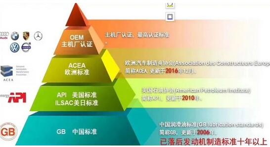 因为他们与****机油 标准相距甚远,通过下方的金字塔,你就明白这个含义,会发现汽车厂 (OEM主机厂 ),才是的金字塔上层。但这些 的显示,一般就是机油桶背面的一排不起眼的小字。