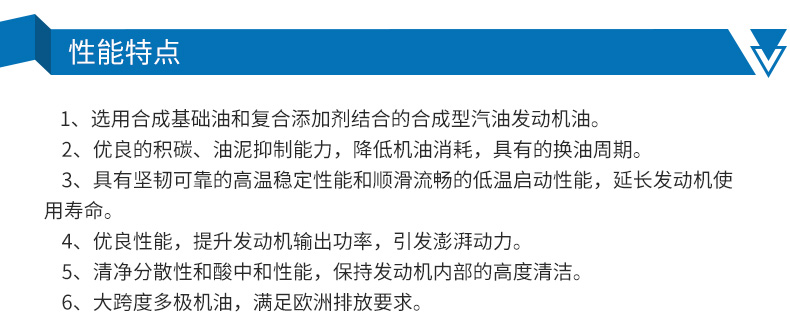 ●选用进口合成基础油和复合添加剂结合的合成型汽油发动机油。