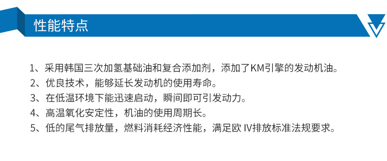 *采用韩国三次加氢基础油和进口复合添加剂,特别添加了KM引擎的发动机油。